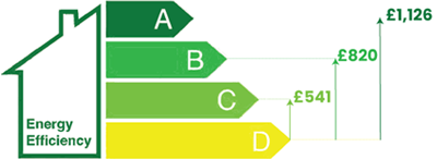 Our homes are highly energy efficient. Save up to £1,126pa on energy bills (benchmarked against a typical rating of a traditional EPC grade of "D"
